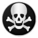 Este diseño presenta un cráneo y unos huesos cruzados sobre un fondo negro.