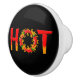 Caliente con la letra O hecha de un círculo de llama con pimientos de chile.