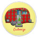 Travesía de caravana redondeada con un gnome en un traje verde, para el personalizar, personalizable cambiando a su nombre en cualquier color de fondo