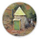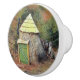 Este botón de cerámica ofrece una casa del duende encontrada en las maderas de Killingworth Connecticut en la granja de árbol de navidad del Winterberry.