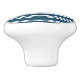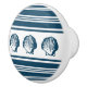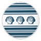 Diseño náutico con conchas azules y decoración de rayas sobre fondo blanco