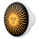Añade algo de sol -literalmente- a tu espacio con este elegante botón de empuje de cerámica amarillo y naranja de la cara de la explosión del sol. Sobre un fondo negro agudo. Un toque celeste de elegancia vintage para armarios, puertas de armario, cajones de mobiliario o para usar como prácticos ganchos de salón. Complementa los estilos de decoración moderna y tradicional. ¡Deja que el sol brille con este divertido arte solar!