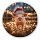 Arte de postales con un adorable cerdo vestido con un sombrero de Santa y rodeado de Navidades con luces intermitentes.