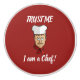 Cabeza del chef con gorra, pañuelo rojo y texto personalizado.