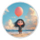 Un reconfortante ilustracion 3D de un lindo chica personalizado sosteniendo un globo rojo mientras se paraba en una playa al atardecer. Con su cabello negro barrido por el viento y su sonrisa de ojos amplios, irradia inocencia y alegría. Las nubes de ensueño y las suaves olas del océano crean un ambiente mágico y tranquilo. Perfecto para habitaciones para niños, decoración de guardería, tarjetas de felicitación o obras de arte para soñadores de todas las edades.