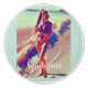 Modelo de chica de playa de Bikini parado en el borde del agua con cola de caballo a personalizar con tu propio saludo, nombre, mensaje, etc