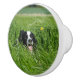 Pomo De Cerámica Collie blanca y negra en la hierba
