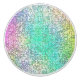 Mosaico colorido abstracto con azules, verdes, rosados, naranjas y plata.