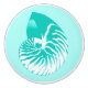 Esbozo digital de una concha de nautilus a rayas - suave concha azul turquesa y blanca contra un fondo acuático pastel