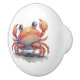 Una perilla de cerámica con un ilustracion acuarela de un cangrejo muy lindo.