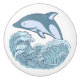 Ilustracion de lindos delfines azules en estilo retro con olas de mar decoración para todos los amantes de los lindos delfines