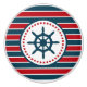 Diseño náutico con decoración de ruedas de vela en forma redondeada con estrellas sobre fondo rayado rojo, azul y blanco