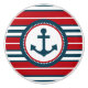 Diseño náutico con decoración de ancla en forma redonda sobre fondo rayado rojo, azul y blanco