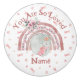 Presentamos el pomo de cerámica para el arco iris del bebé elefante, una adición encantadora y caprichosa al vivero de tu pequeña. Presenta un diseño delicioso de un lindo bebe acuarela y elefante de mamá bajo un ilustracion arcoíris. Con un texto editable que dice que Eres tan querido y un lugar para el nombre de tu recién nacido.