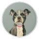 Ésta es una pintura de la acuarela de un perrito blanco y negro del pitbull. Es un cierre para arriba del perro con los ojos de mirada esperanzados grandes. Esto fue pintada en el papel presionado caliente Arched con las pinturas de la acuarela de Daniel Smith.