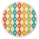 Se trata de un elegante patrón de estrenos atómicos modernos de mediados de siglo colocados sobre ovarios en rojo, verde, mostaza y verde azulado. Es una manija de cerámica muy bonita para tu hogar