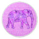 Knob en un medio mixto gráfico digital de un elefante contra un fondo de baldosa arabesca - Patrón de giro fractal en tonos amatistas morados y suaves de orquídea y violeta