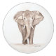 "A delicate watercolor painting of an elephant is featured on this drawer pull, capturing the gentle curves and soft textures of the animal with subtle shades of gray and hints of muted color. The design brings a touch of whimsy and charm to furniture, making it a unique and artistic accent for any room."
