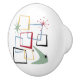 Añada ese toque de diversión y color a su cómoda o mesa de noche con este fabuloso pomo de cerámica moderna de mediados de siglo. Este diseño presenta cuadros abstractos, estallidos y un boomerang en los colores rojo, amarillo, azul, verde y negro... ¡tan divertido!