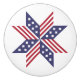 Decoren sus muebles con este botón con esta bandera patriótica de las Estrellas de Estados Unidos y de las Rayas en el rojo de la gloria antigua y azul de la gloria antigua. La estrella de ocho puntas tiene la forma de un símbolo nativo americano. Los colores son uno de los conjuntos aprobados de valores RGB. La imagen está diseñada como un vector.