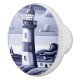 Pomo De Cerámica Faro costero junto al mar Azul y Blanco