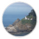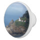 Fotografía costera clásica de un faro blanco con el tejado rojo en Oregon con un mar tranquilo.