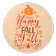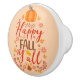 Ilustracion colorido con diseño de texto "Happy fall y'all" y flores, calabaza y hojas para todos los que les gusta caer