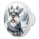 Pomo De Cerámica Feliz Schnauzer en un escarpado arte invernal