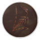 Una simple imagen aleatoria, no estructurada, fractal que se asemeja al esqueleto fosilizado de un dinosaurio raptor o, tal vez, el Archeopteryx tipo pájaro; superpuesto sobre un fondo de piedra oscura.