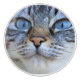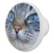 Este diseño presenta una imagen adorable de un gato mirando con determinación a la cámara. Tiene un hermoso abrigo gris de piel.