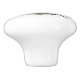 Esta perilla de cerámica tiene adorables obras de arte gráficas que representan la cara de un gato siamés en colores cálidos, oscuros en la luz, con ojos azul pálido.
