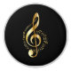 Clef de trébol dorado brillante moderno con notas sobre fondo negro