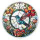 "colibrí", "ave zumbante azul", "flores rojas floridas", "arte de cristal teñido", "naturaleza florida de vidrios de mancha", "animales hermosos en vuelo", "alas voladoras de bonito",