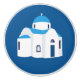 Un bonito ilustracion de una iglesia tradicional de la cúpula azul de la isla griega en Santorini. Un diseño ideal para los amantes de la arquitectura mediterránea griega, las islas griegas, Santorini, las iglesias con cúpulas azules, etc. Una decoración o un regalo de verano perfecto para los amantes de Grecia, las islas griegas y las iglesias tradicionales griegas.