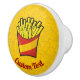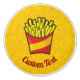 ilustracion personalizado de un pequeño paquete de patatas fritas. Iconos de contorno de comida basura fondo de patrón amarillo. Texto personalizado.