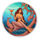 Sirenita de pelo largo con un cóctel martini sentado en un extraño caballito de mar/criatura tipo jirafa bajo el agua para el personalizar, personalizándolo cambiando a tu nombre
