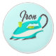 Una plancha de lavado, verde azulada y verde limón, de fondo verde azulado pálido. Texto de "hierro" arriba.