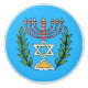 Esta imagen fue adaptada de una antigua teja judía persa y cuenta con una menorah con un Magen David (Estrella de David) enmarcado por ramas de olivo. Se han conservado las imperfecciones de la imagen original pintada a mano.