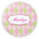 Damas divertidas o chicas mango de golf personalizar con tu propio nombre en un estilo de fondo de argyle en rosa y verde. Lee Marilyn o personaliza con tu propio nombre. Diseño gráfico único de Sarah Trett.