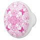 Un medallón de mariposa rosa encalado sobre un fondo blanco es el diseño que se muestra en este pomo de cerámica para su uso en muebles o gabinetes de cocina.