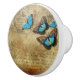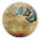 Un diseño vintage-inspirado único y hermoso con un marrón/un fondo del moreno y cuatro mariposas azules brillantes. Hay elementos maravillosos incluyendo una tetera, un scrollwork, y una escritura