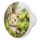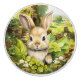 Un bonito conejo asoma a la exuberante vegetación, rodeado de flores vibrantes en un pintoresco jardín. Al fondo, una antigua torre de piedra se alza entre colinas onduladas bajo un cielo azul brillante. Photoshop CS6 de arte digital
