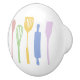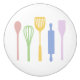 Herramientas de cocina a base de materiales en colores retro para los armarios de cocina con un aspecto vintage.
