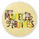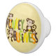 La tipografía luminosa y colorida presenta a monos extravagantes con un texto de "negocios de monos" en verde, marrón, naranja y amarillo. El fondo es la tela de color amarillo pálido / textura de aspecto burlap. Gran acento para la habitación de los niños o la guardería