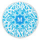 Este botón hermoso del cajón de la casa de verano de la casa de playa el | es inspirado por los arrecifes de coral y las estrellas de mar del océano. El modelo del arrecife de coral se hace en una mirada de la plantilla en el blanco juntado con un azul intrépido, brillante. En el centro, ocho estrellas de mar forman un círculo alrededor de su letra de encargo del monograma.