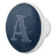Pomo De Cerámica Monograma inicial de textura de cuero azul rústico