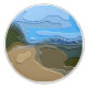 Un diseño abstracto, colorido y luminoso, con vistas a la montaña, cielo azul, roca y árboles.