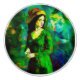 Una pintura generada por IA de una mujer con un vestido verde y un gorra