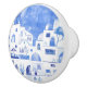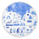 Un cuadro acuático azul y blanco del pueblo de Oia, en la isla griega de Santorini.