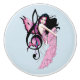 Un lindo hada todo de rosa con una nota musical en un fondo azul